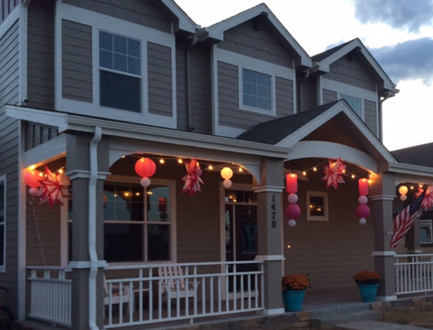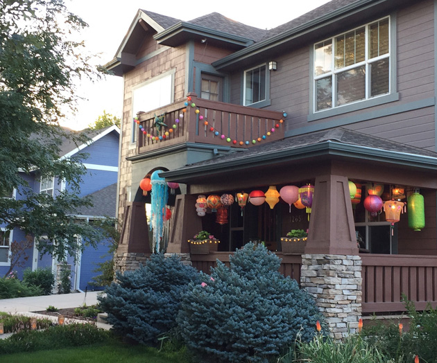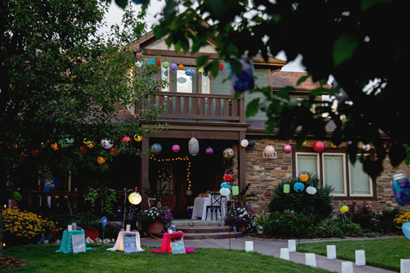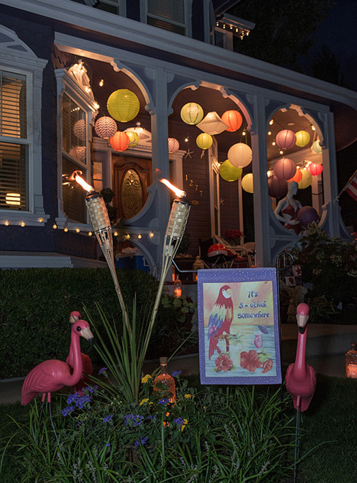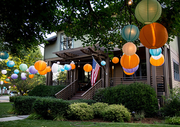include the yard, hanging lanterns in the trees and lining their walks