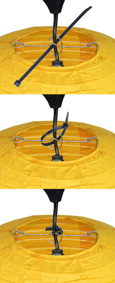 secure our lanterns to the cable with small zip ties. This protects