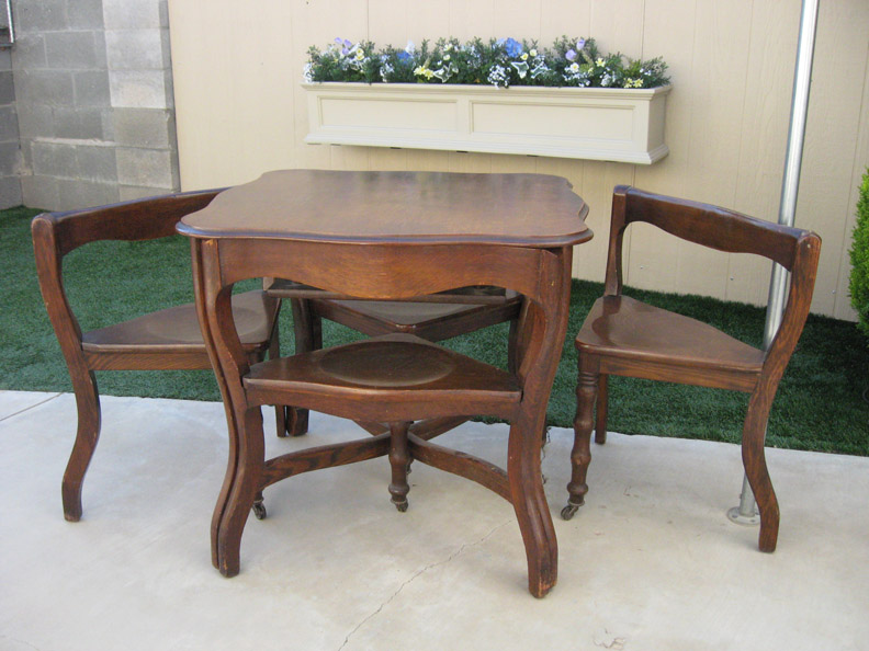 This table and chairs was purchased in an antique shop in Albuquerque, New Mexico in May 2010. I don't have any more history on it than that.